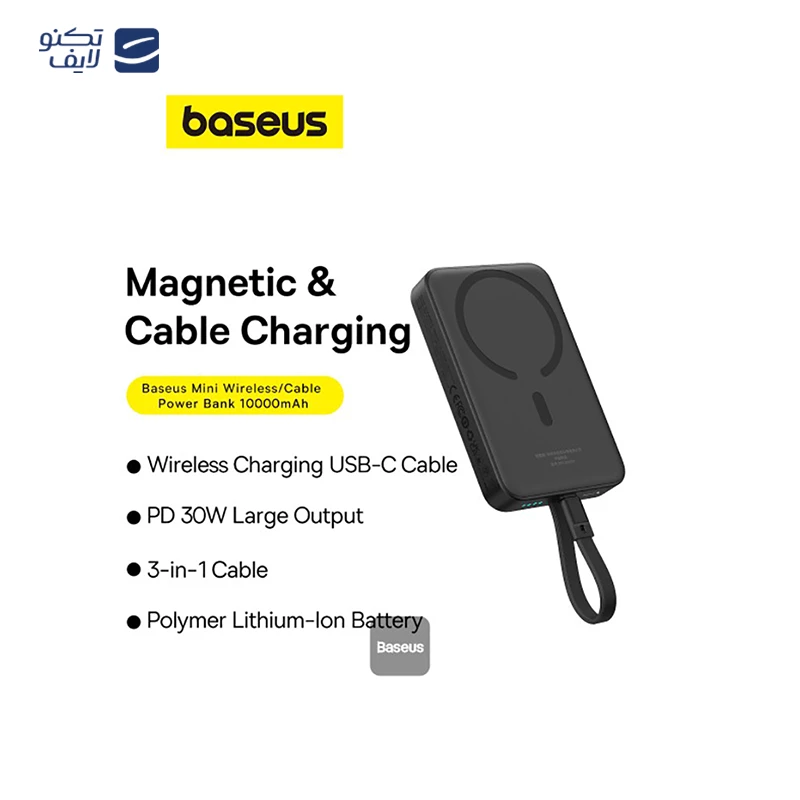 پاوربانک بیسوس مدل Magnetic Mini Wireless ظرفیت 10000 میلیآمپر ساعت – توان 30 وات